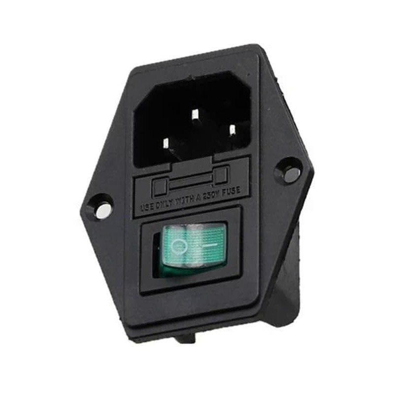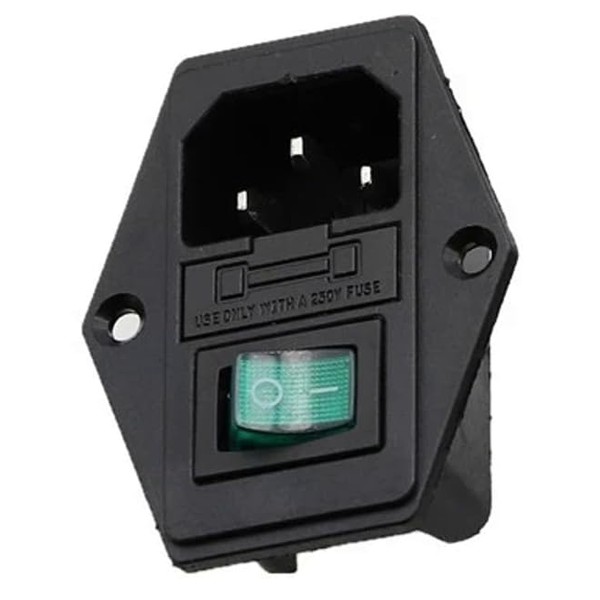 IEC Built-in Socket C14, with Green Switch and Fuse, 3-Pin 220-250V/10A Audio IEC Socket Installation Coupling Plug Socket, 3-in-1 Inlet Module Plug with Switch and Lamp