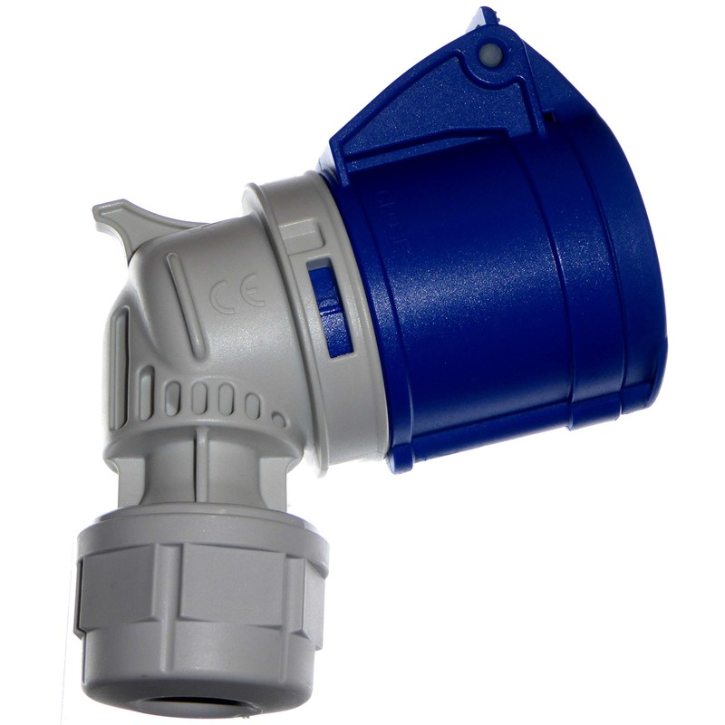 IEC/CEE 16A Angle Coupler Socket - 3 Poles 2P + E - 230V Blue - Garo