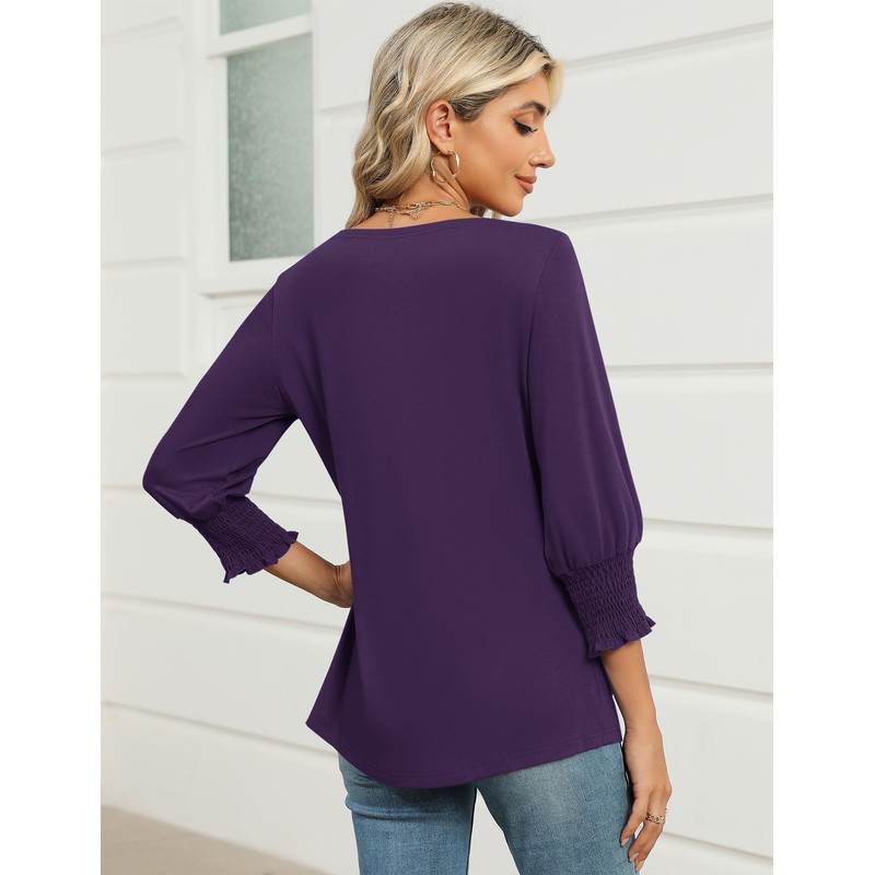 IECCP 3 Quarter Length Sleeve Tops for Women Womens Tops Casual Summer Shirts for Women Womens Summer Fall Shirts 2025 Purple,L