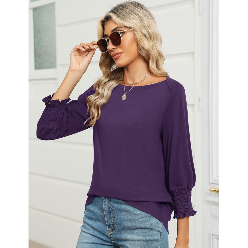 - Features:3/4 sleeve tops suitable for both warm and cool weather, featured smcoked cuffs for a more stylish look, boat neck top makes the 3/4 length sleeve womens tops more flattering and elegant.