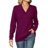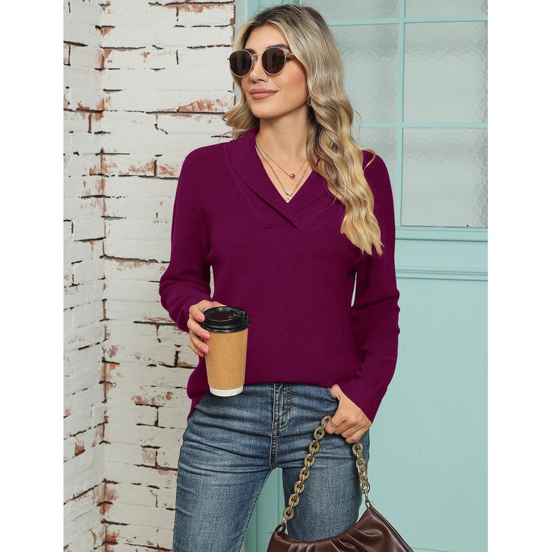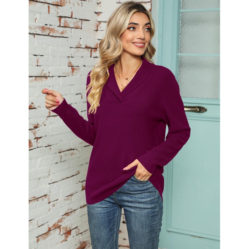IECCP Ladies Jumpers V Neck Lightweight Long Sleeve Sweater Casual Solid Color Pullover Fuchsia L
