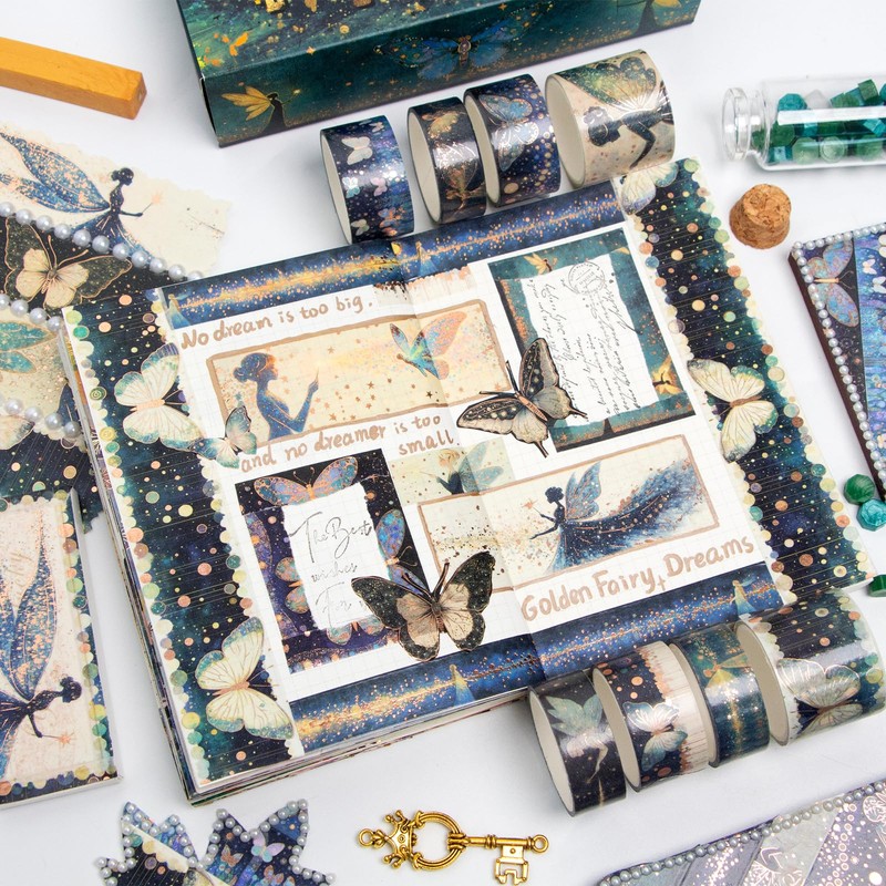 - [Pretty Gift] - These uniquely designed green fairy butterfly stamping pattern washi tapes come in a uniquely designed box, very pretty and practical as a gift for friends, classmates, and lovers of junk journals and journals as well as a box full of art and fun!