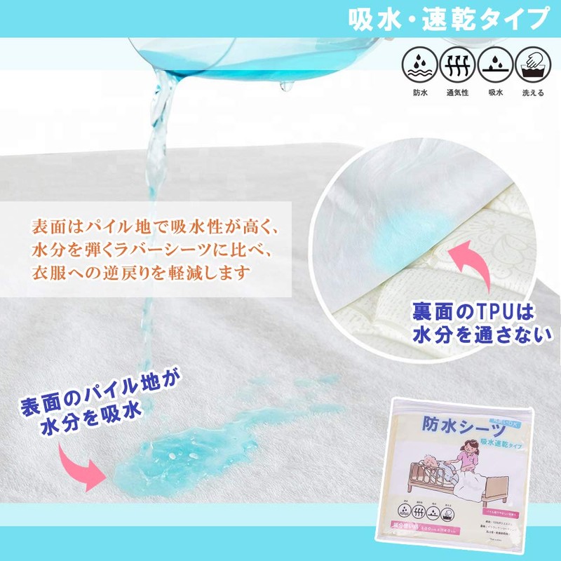 - Absorbent, Quick Drying, Breathable: Waterproof sheets made of pile fabric with good water absorption. The surface area that touches air is wide so it dries quickly, and it prevents mold and odor buildup for a hygienic look. It improves the breathability and absorption rate of sweat, eliminates unpleasant bump feelings, and makes your sleep more comfortable