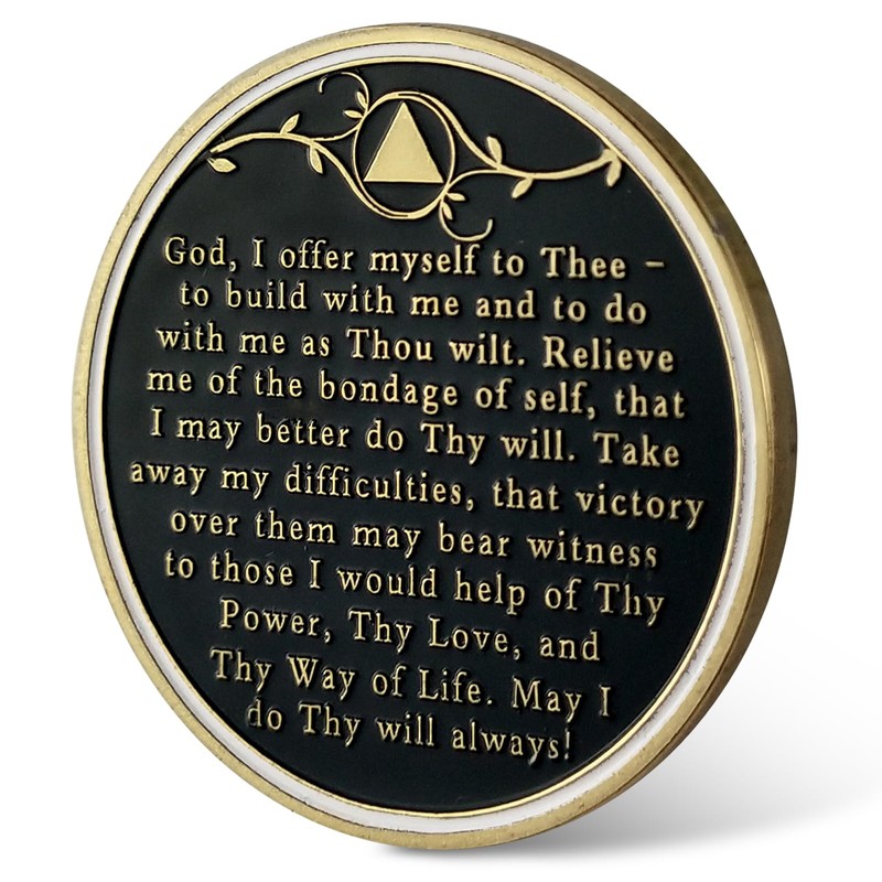 - Reverse side of Recovery Chip: Engrave AA Symbol surrounded by branches of tree of life and AA Third Step Prayer: "God, I offer myselt to Thee-to build with me and to do with me as Thou wilt. Relieve me of the bondage of self, that I may better do Thy will. Take away my difficulities, that victory over them may bear witness to those I would help of Thy Power, Thy Love, and Thy Way of Life. May I do Thy will always"