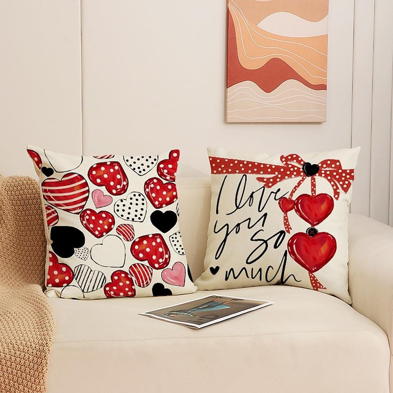 - Seasonal Decor: Liven up your home with these festive Valentine's Day throw pillow covers featuring vibrant red hearts and love-themed designs.