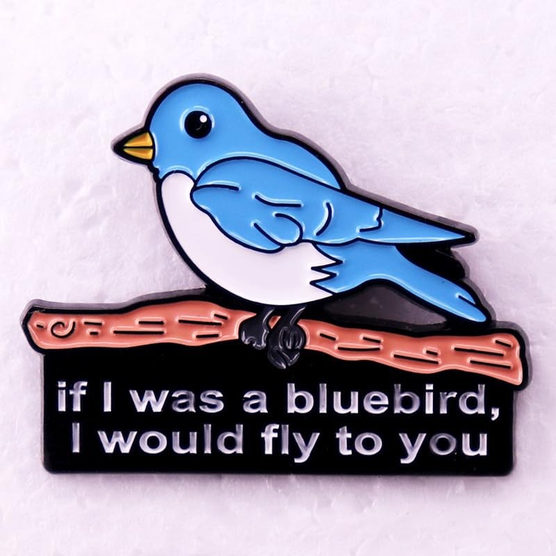if I was a bluebird, I would fly to you enamel lapel pin Poems Badge Brooch For Backpacks