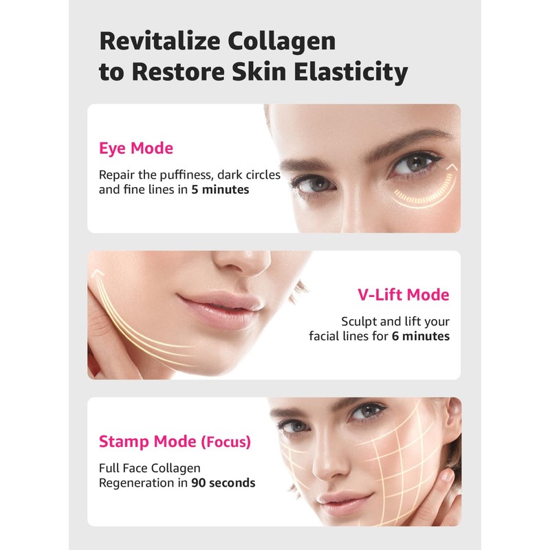 - Quick Rejuvenation: Provides noticeable lifting and tightening effects in just 90 seconds, improving skin definition and reducing fine lines when used with a hydrating gel for long-lasting moisture