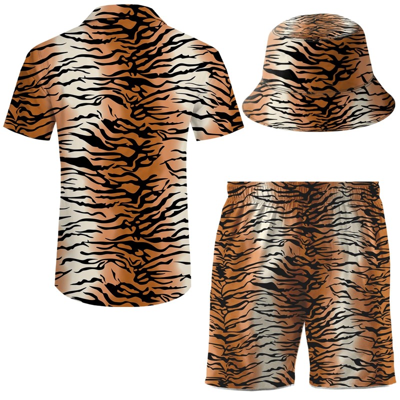 ifamawlea Men's 2 Piece Animal Print Tiger Hawaiian Shirt Shorts Button Down Rave Shirt and Shorts Sets with Bucket Hats L