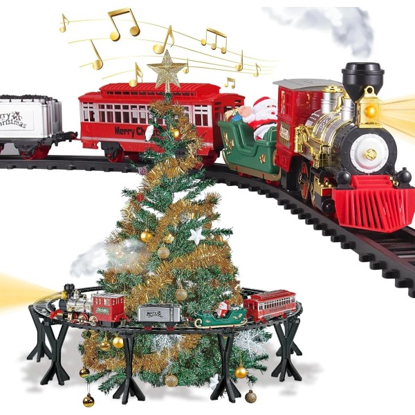 ifanface Christmas Tree Train Elevated, Floating Train Toy Steam Engine with Smoke, Li...