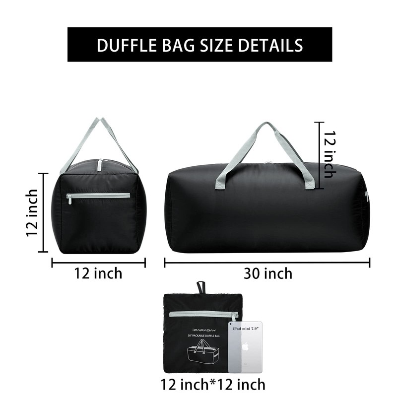 iFARADAY Foldable Duffel Bag 30 inch 75L Large Lightweight Luggage for Travel-Black