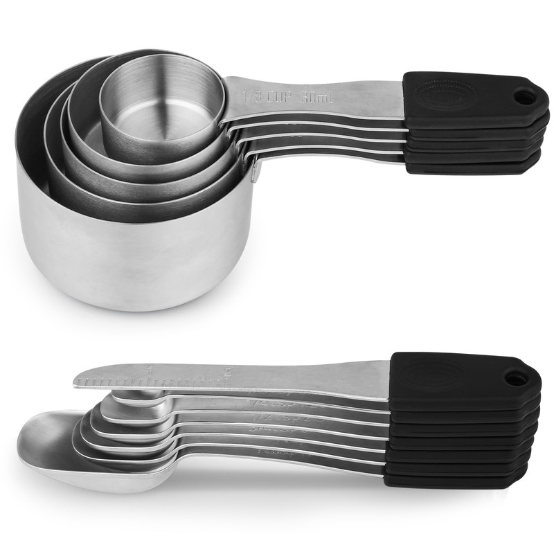 - TOP QUALITY AND DURABLE-Black Magnetic Measuring Cups and Spoons Set are made of top quality stainless steel,ensuring they will never rust, bend or break easily. These metal measuring Cups and spoons set are dishwasher safe and will help you cook or bake for years to come.