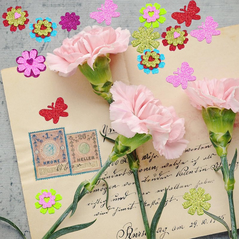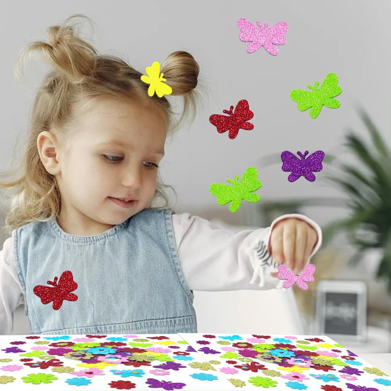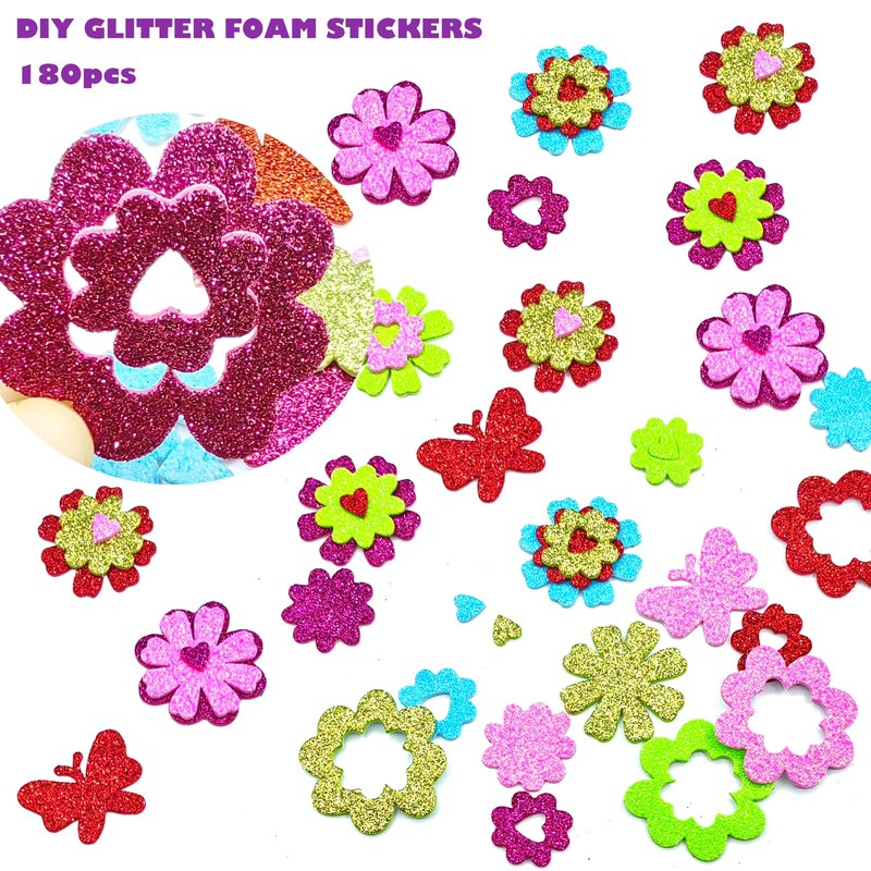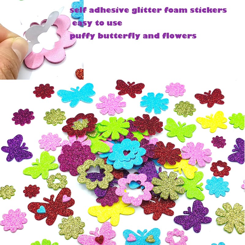 • Suitable for people, these puffy glitter flower stickers are suitable for all groups, the product is adhesive, easy to peel off。 These foam stickers easy for small hands to manipulate