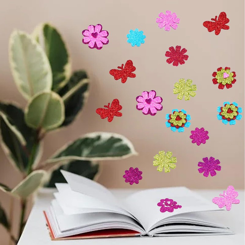 IFKEGON Foam Flower Stickers, Puffy Self Adhesive Shapes Materials,Suitable for Different scenarios and Projects (180, Glitter Butterfly Flower)