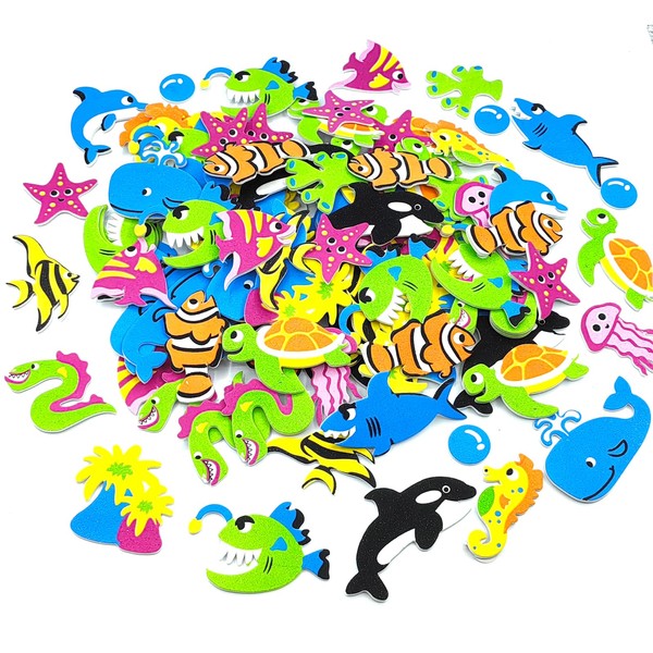 IFKEGON Foam Ocean Stickers,Bulk Self-Adhesive Sea Themed Animal Shapes for Arts Crafts , Decoration Classroom Teaching DIY Supplies Materials (180, sea Animal)