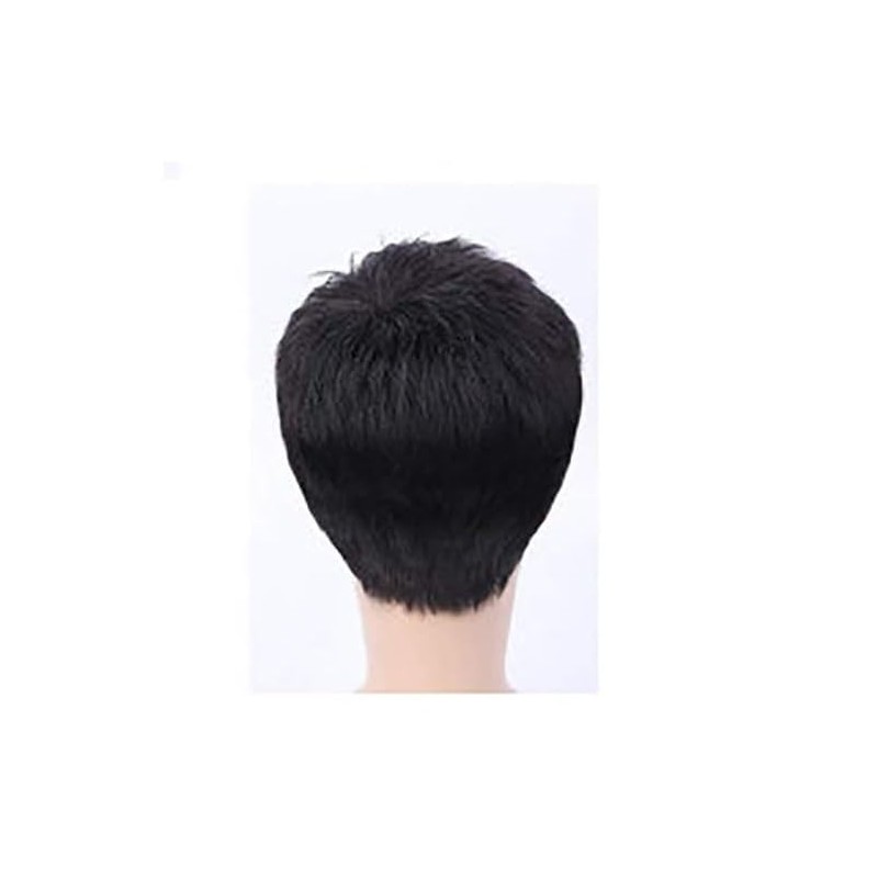 IFLY メンズ ウィッグ ブラックショート 人毛 かつら 男性 ストレート カジュアル マニッシュショート 通気 イケメン かつら ビジネス 男性用 自然 ネット付き フリーサイズ wig (つむじ遞針)