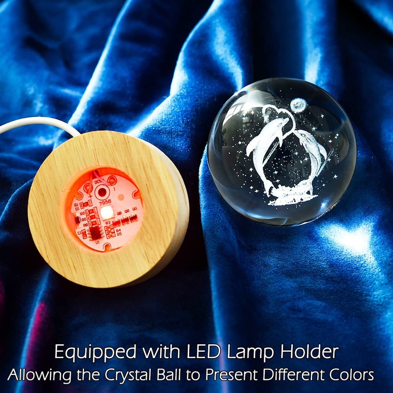 - 3D Dolphins Crystal Ball: Diameter of Crystal is 2.36", with Wooden Colorful Lighting Base