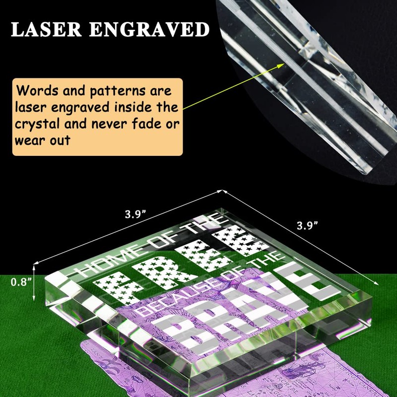 - Unique Design Sign: "Home of the Free Because of the Brave" with American Flag, Pattern and Words are Laser Engraved into the Crystal Glass, will Never Fade, Long Lasting for Ever