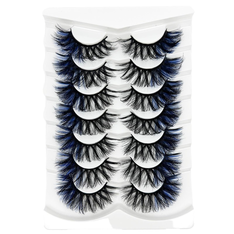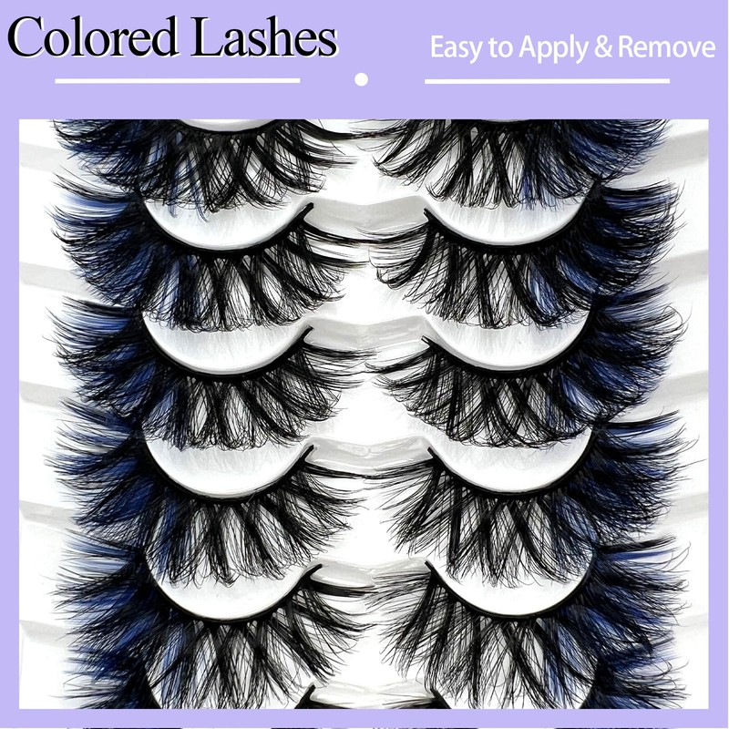 IFSOWDRA Colored Lashes Mink Wispy C/D Curl 3D Mink Strip Lashes Blue Color Lashes Natural Look Dramatic Long 20mm/25mm Cat Eye False Lashes Pack