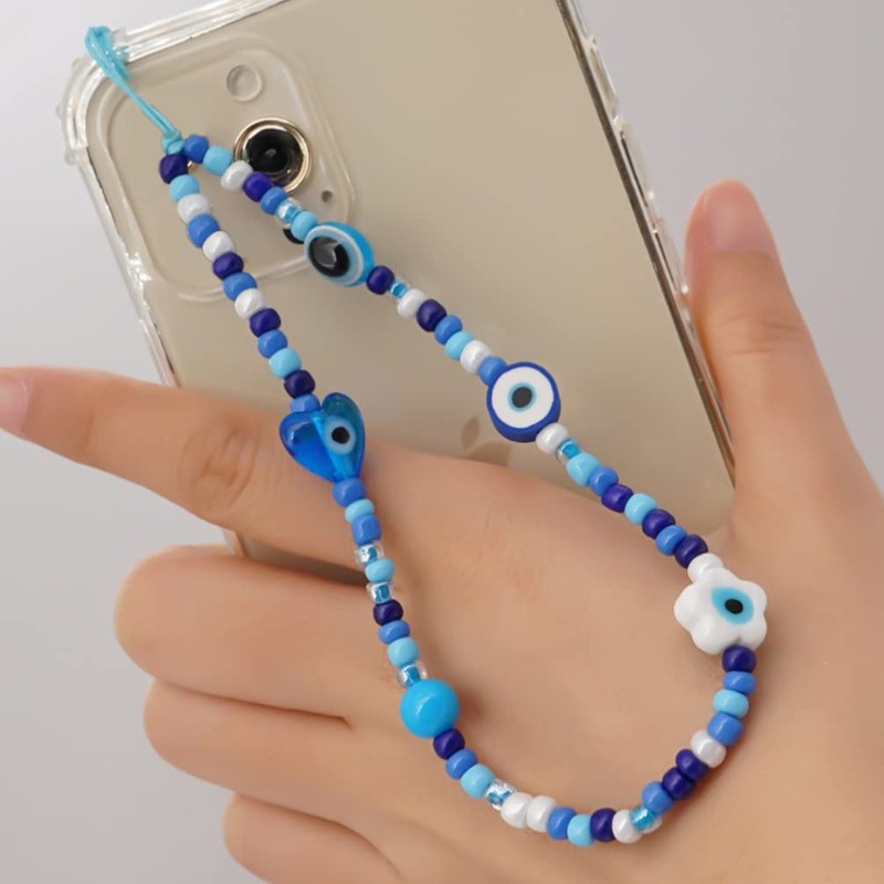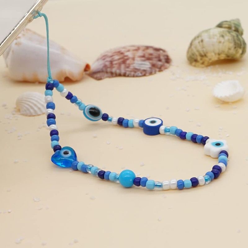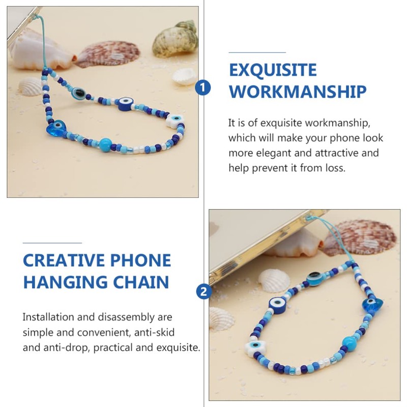 ifundom Phone Chain Rope Cellphone Lanyard Cell Phone Hanging Rope Portable Evil Eye Beads Mobile Phone Lanyard Phone Chain Phone Wrist Chain String Hanging Cord Blue Decor Decorative Phone Strap