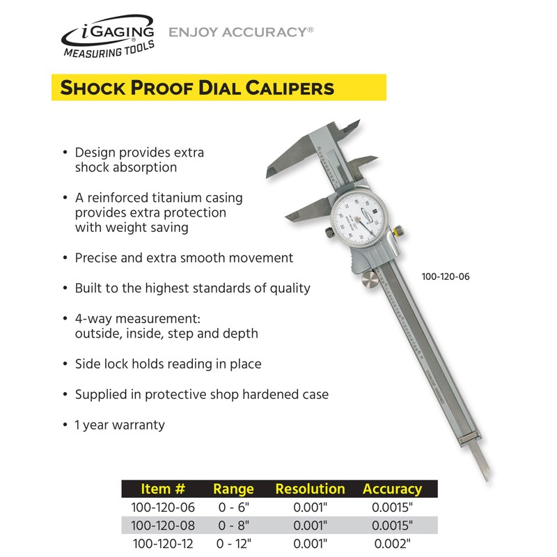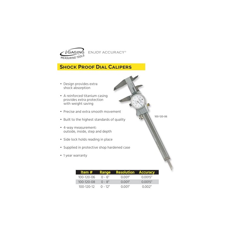 iGAGING Premium Movement Dial Caliper 6"/0.001" Supreme Precision Maximum Shock Proof Solid Hardened Stainless Steel
