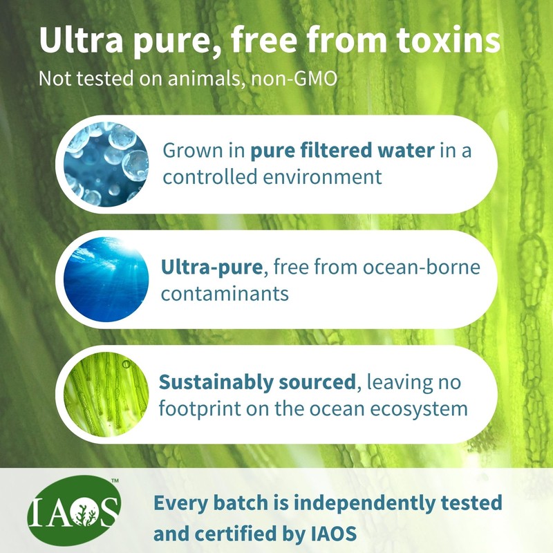- ULTRA PURE algae oil is grown in pure, filtered water in controlled conditions for superior purity
