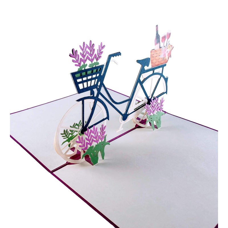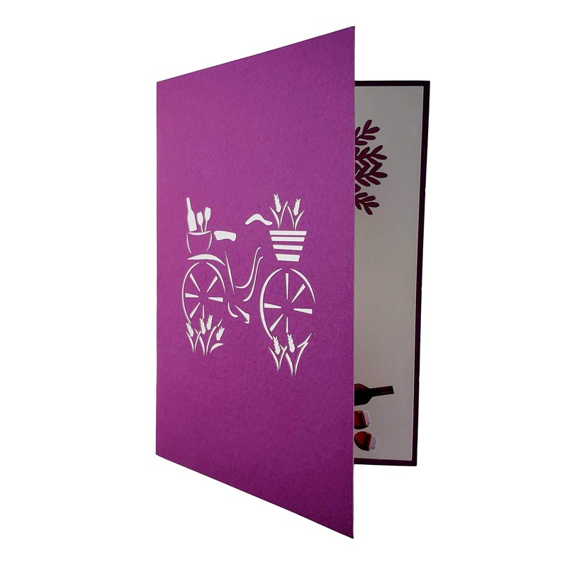 - Our Fun Bike and Fine Wine 3D Pop Up Card is sure to bring a smile to the faces of everyone who receives it. The beautiful design comes alive when opened, revealing a colorful bike and wine scene that can be enjoyed time after time.