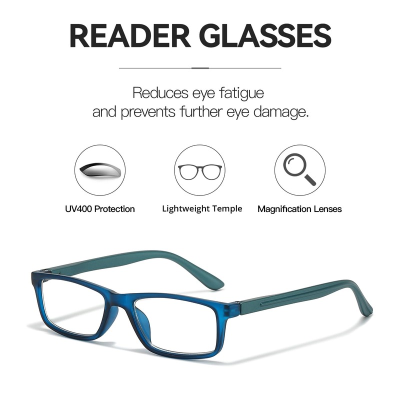 - Stylish Rectangle Frame Design: These rectangle frame reading glasses are very simple and fashionable, suitable for any outfit to wear on your body. Lightweight design brings you a good visual experience, unbreakable, easy to clean and safe to wear.