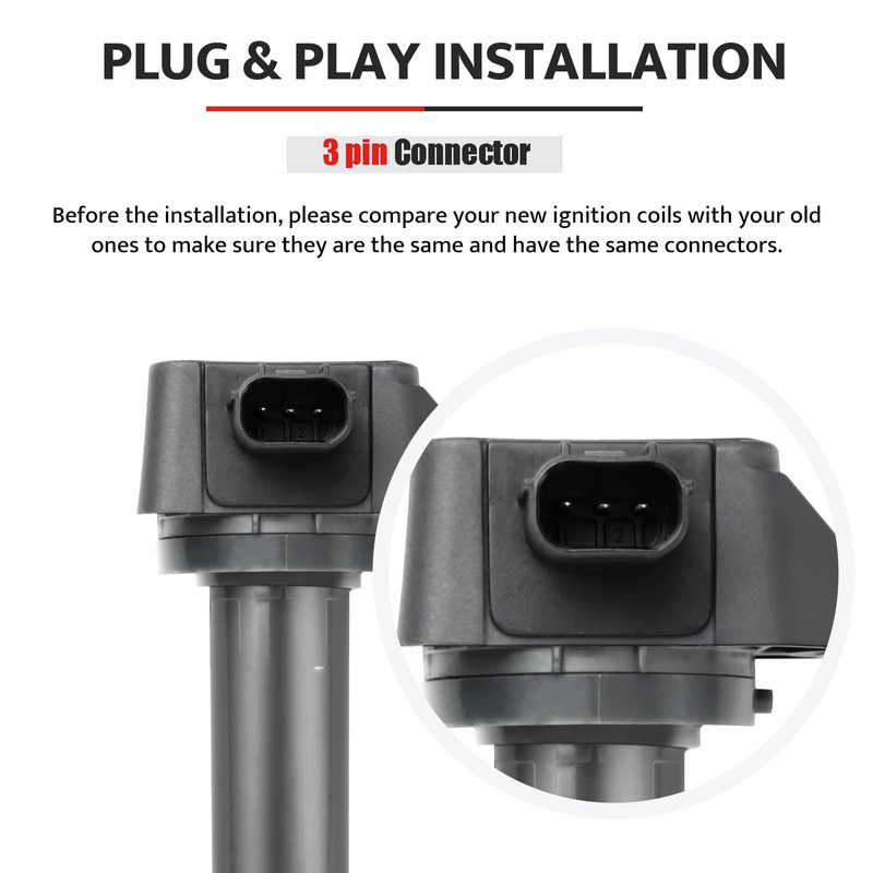 - Package Includes: 4pcs coils & 4pcs pre-gapped spark plugs. Before the purchase, please check the Compatibility Chart of the listing to make sure the coils & plugs fit for your car.