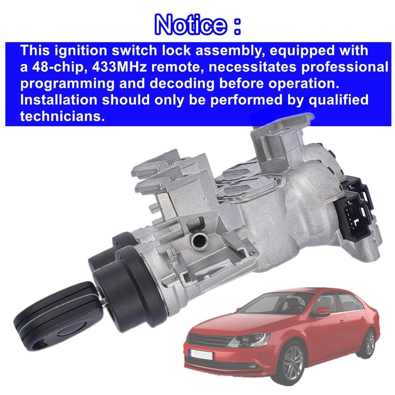 - ! ! ! Notice ! ! !:This ignition switch lock assembly, equipped with a 48-chip, 433MHz remote, necessitates professional programming and decoding before operation. Installation should only be performed by qualified technicians. Purchase by non-professionals is strongly discouraged.
