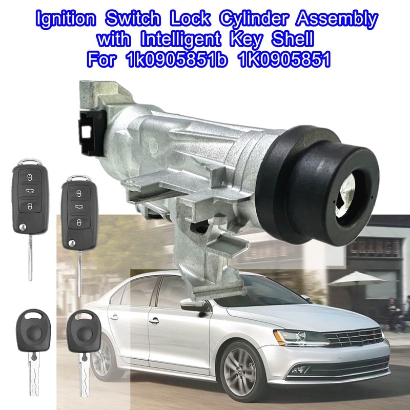 Ignition Switch Lock Cylinder Assembly with Intelligent Key Shell For 1k0905851b 1K0905851, Compatible with VW Jetta 2006-2018,Eos 2007-2011,Golf 2004-2011,Rabbit 2006-2009
