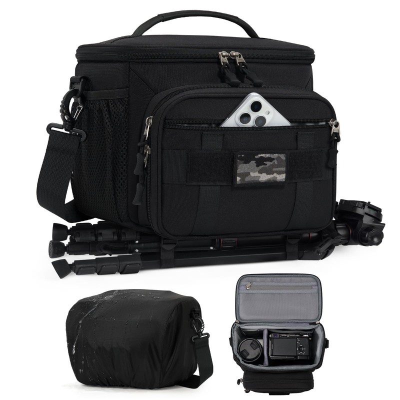 - Diseñado Específicamente Para La Fotografía: Bolsa para camara fotografica equipado con correas ajustables para trípode, que permiten fijar el trípode de la cámara en la parte inferior del bolso de cámara, adecuado para trípodes de hasta 14 pulgadas de longitud. El estuche para camara cuenta con cremalleras metálicas SBS bidireccionales, que se abren y cierran suavemente, facilitando una rápida extracción de la cámara y el equipo.