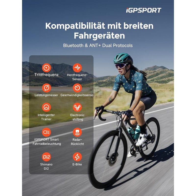 - ANT+/Bluetooth 5.0 Dual Protocol: This bicycle computer can be connected to many sports equipment such as speed/cadence/heart rate sensors/e-bike and smart trainers.