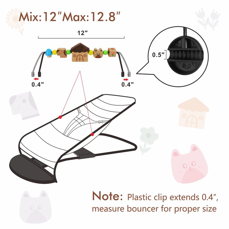 - Suitable For A Variety Of Models: Baby toy bars are designed for use with both the Bliss and Balance Soft bouncer models.Other bouncers in the 12″-12.8″ width range fit equally well Clip notch radius is 0.5″. (Measurements are taken before choosing for accuracy)