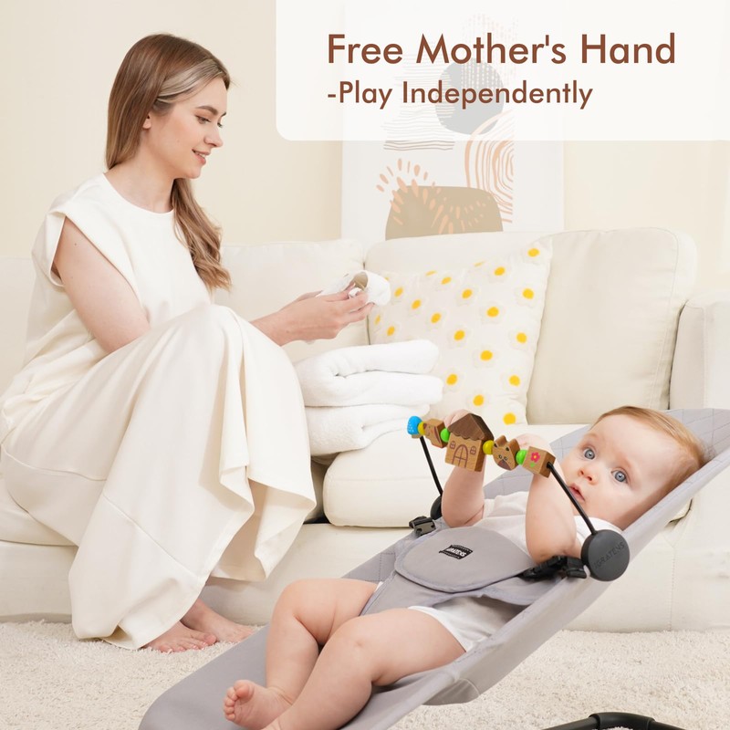 - Natural Child Safe Material: Wooden bouncer toy bar is made of natural beech wood material, safe, non-toxic spray paint, no smell . Wooden toys are stronger, textured, warm and natural, suitable for babies to play with for a long time, and give more safety and tactile comfort.Protect your child from generic toys that are avoid using plastic toys