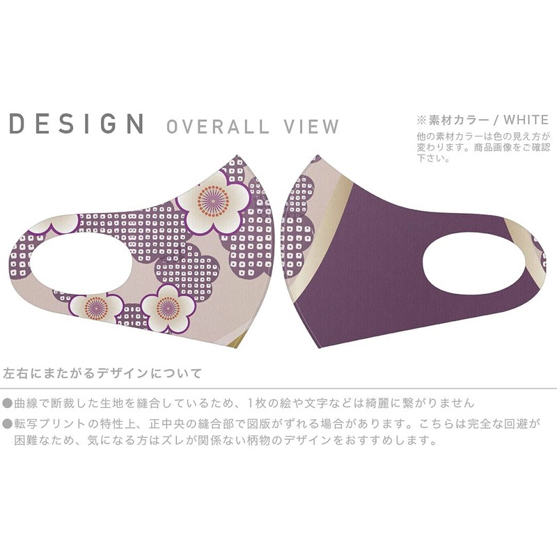 [igsticker] デザイン マスク 2枚セット ポリエステル 洗える 布マスク XLサイズ 大きめ 男性用 005248 フラワー 和風 和柄 紫 花