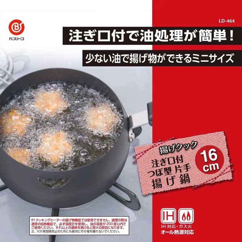 リバティーコーポレーション IH 片手 天ぷら鍋 揚げ鍋 つぼ型 16cm 注ぎ口付 LD-464 揚げクック