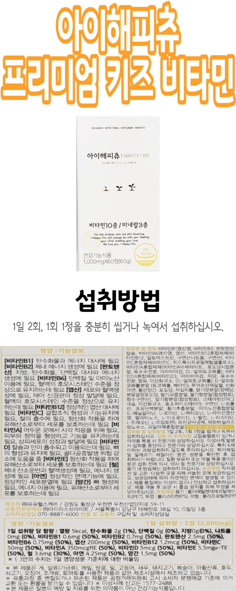 아이해피츄 프리미엄 키즈 멀티 비타민 츄어블 영양제 보조제 판토텐산 아연 망간 엽산 종합 복합 건강기능