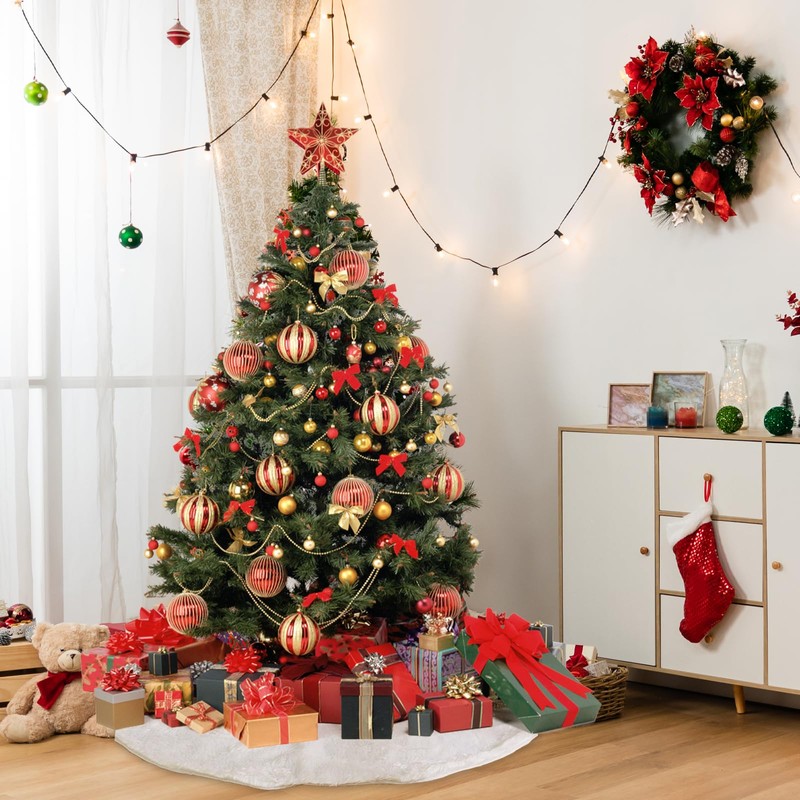 • Perfect size: available in tree skirts with 90 cm diameter and 120 cm diameter. Fits perfectly with 4.5-7.5 foot Christmas trees. Large enough to cover the Christmas tree stand and store any gifts or ornaments on it.