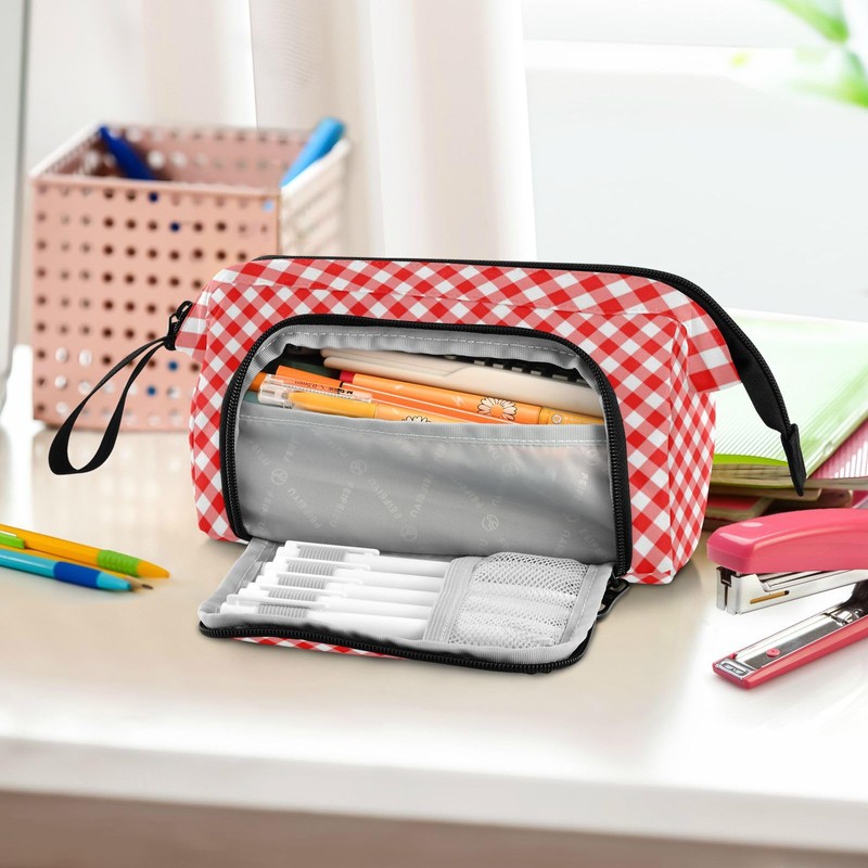 IHCVHQX Pencil Case Red Gingham Pattern Large Capacity Pencil Pouch Handheld Pen Bag Stationery Storage for Teen Student College Office Adults