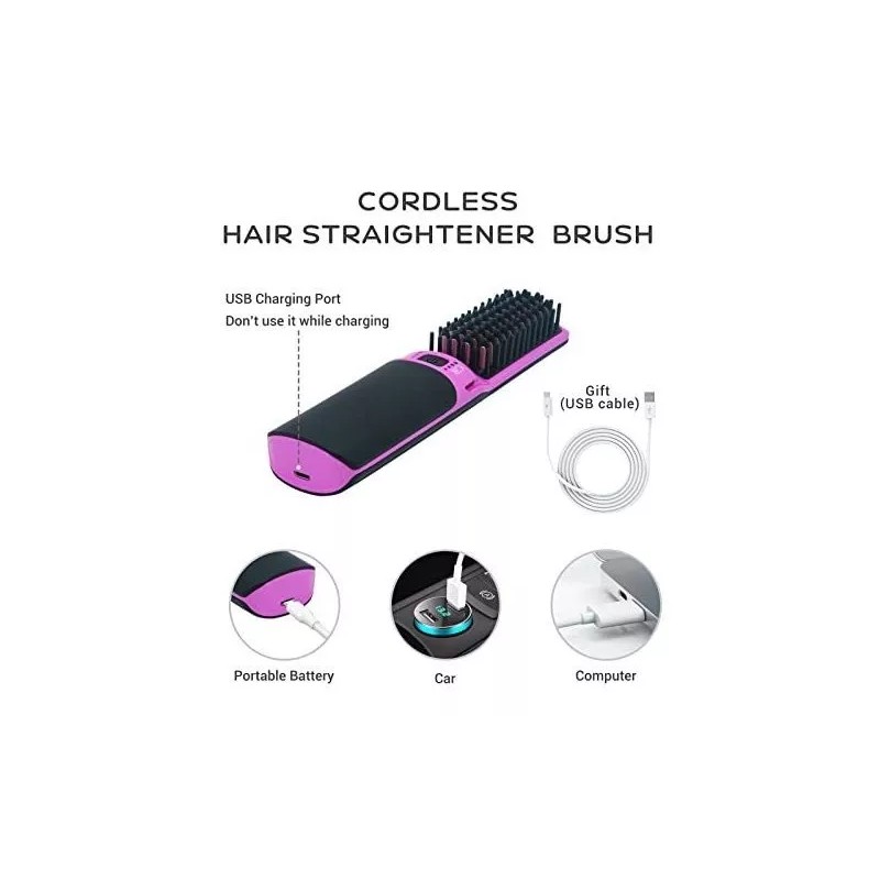 regalo perfecto para mujeres y hombres. El cepillo alisador de viaje te permite retocar el flequillo, la estructura del cabello o la cola del cabello a la perfección. Nota: este peine USB inalámbrico con cepillo caliente es ideal para cabello y flequillo cortos, delgados y finos, para mujeres o para cepillar la barba para hombres. Con cepillo alisador de pelo tamaño de viaje, es perfecto para citas, fiestas, viajes, vacaciones y viajes de negocios, excelente opción para mujeres y hombres.