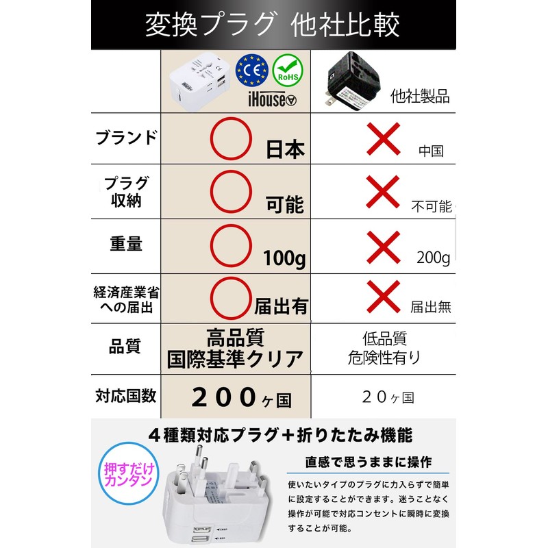 - This product is a "conversion plug" to convert the shape of the outlet, and does not have a transformer function. Please note that this product cannot be used in Japan. Compatible with plugs from more than 200 countries around the world, including Korea, China, USA, UK, Europe. The B, B3 type is not compatible, so please check the plug type in your country of use. This product is intended for use overseas, so it does not obtain Japanese electrical standards (PSE)