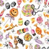 HALLOWEEN PARTY DÉCOR White napkin filled with a scattering of Halloween candy and treats; ideal for spooky celebrations, haunted house snacking, or a Halloween bash