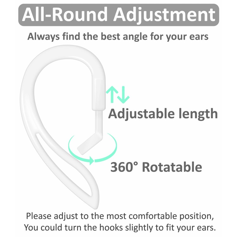 - 【 Multi-Dimensional Adjustable Hooks 】 Adjustable length and 360 angle rotatble, made of bendable flexible plastic, durable and lightweight, please change the shape to fit in your ears.