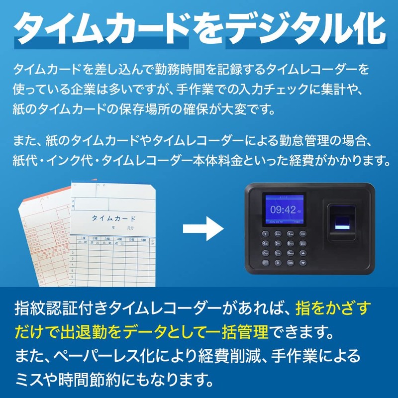 iimono117 Time Recorder, Fingerprint Identification, Time Card, Attendance, Attendance Management, Password Authentication, Attendance Management, Automatic Aggregation, Cost Saving, Paperless Time Card Recorder, Anti-hitting