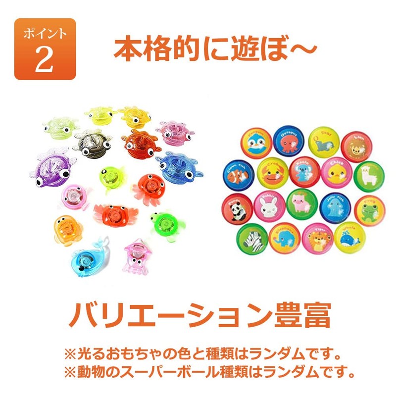 • [Product Details] Super Balls: 70 pcs, Glow Toys: 4 pcs, Goldfish: 7 pcs, Duck: 3 pcs, Poi: 20 pcs, 5 pcs, Total 109 pcs, Bushy Toy Set. Note: Poi, goldfish, superball, and bag colors are sent randomly. Please acknowledge