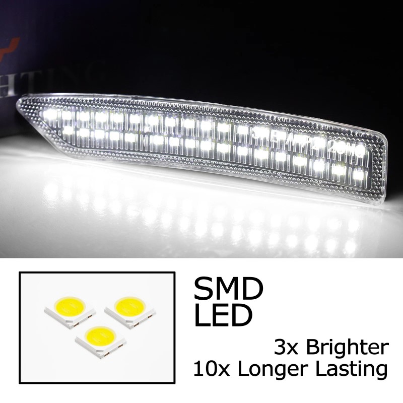 - Includes a set of (4) clear lens driver/passenger side, front and back xenon white full LED side marker assemblies