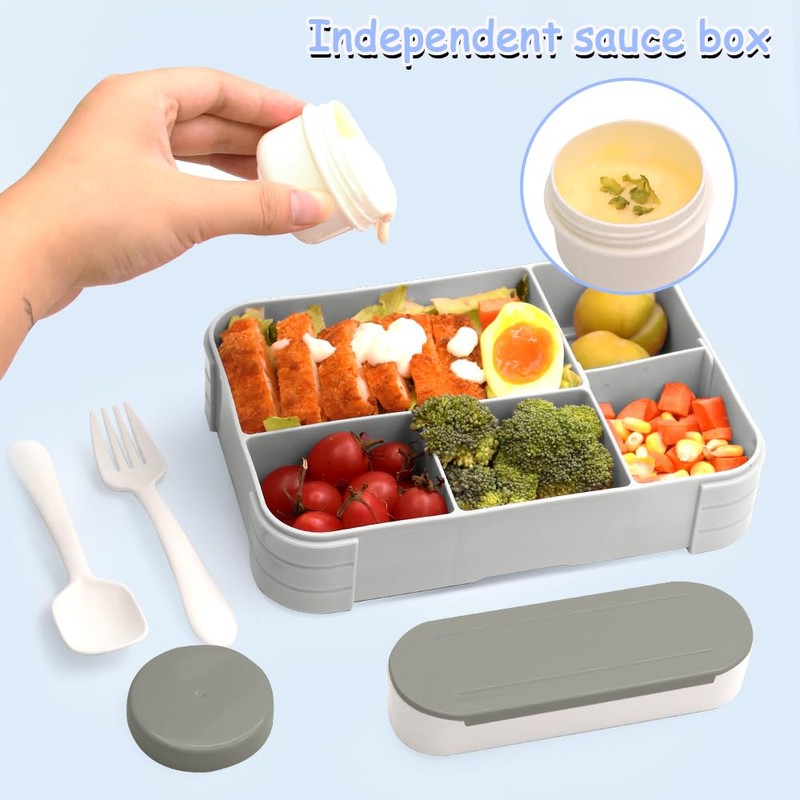 - Children's lunch box with compartments – the nursery lunch box has 5 compartments to serve main food, fruit, snacks, salad, sandwich and sauce separately.