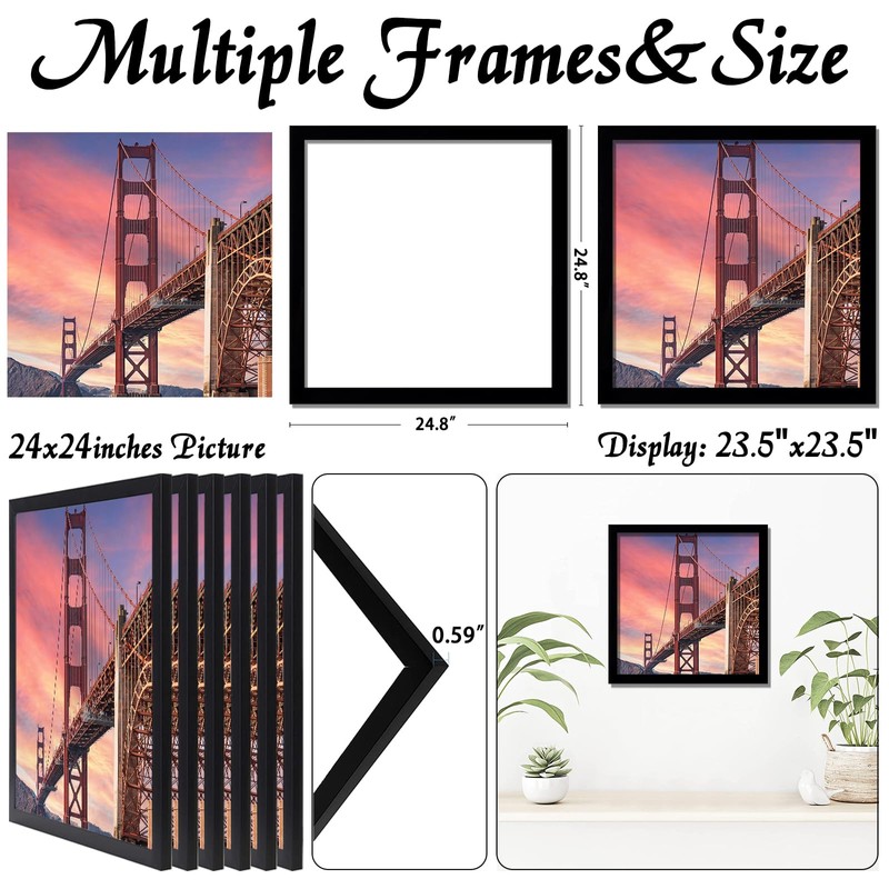 • ❶ MULTIPLE FRAMES✔ ➤There are 6 packs of picture frames in a same size. The black frame works for photo canvas certificate collage poster size 24x24 inches.