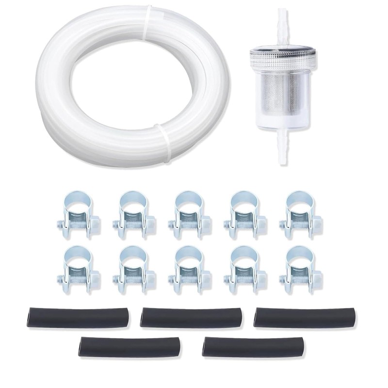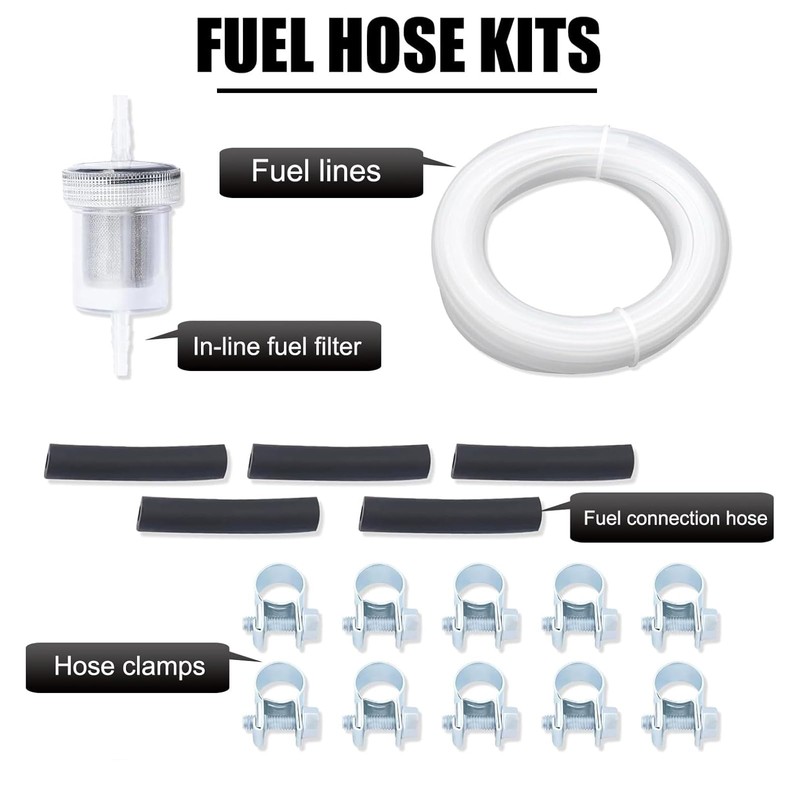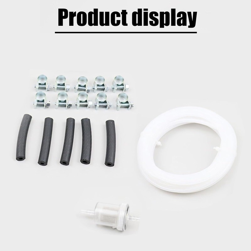 - Package Inclusions: Your purchase includes a comprehensive set of car heater fuel lines, comprising a 16.4-foot white oil pipe, a 1.37-inch by 3.14-inch oil filter, ten mini clips ranging from 0.35 to 0.43 inches, and five 1.96-inch black rubber adapters.