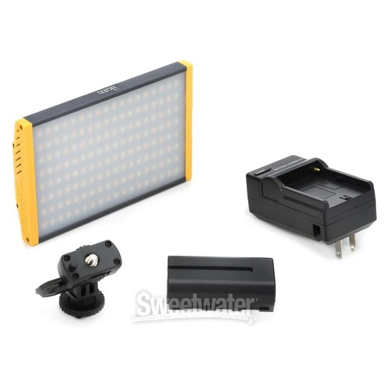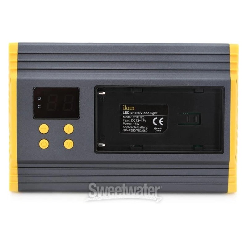 Bring the power of professional-grade LED lighting to your filming setup with the OYB120 aluminum on-camera light from Ikan. This adjustable attachment features 144 high-brightness LEDS, which provides industry-standard, bi-color lighting at 100-watt incandescent light equivalency. It’s adjustable from 3200K to 5600K and features 10% to 99% controllable dimming settings for dialed-in performance on any set. Simply access the OYB120’s navigable LED display and quickly find your preferred light output for easy, on-the-spot illumination changes. As Sweetwater videographers have discovered, the included hot shoe and battery charger make this light a cinch to integrate into your setup.Ikan OYB120 Aluminum On-camera LED Light Features:
